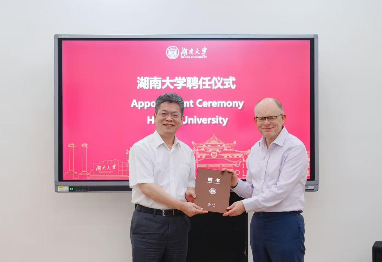 访问期间,我校举行Richard Penty客座教授聘任仪式,邓卫为Richard Penty颁发了聘书。湖南省科学技术厅党组书记李志坚出席,姜潮主持受聘仪式。