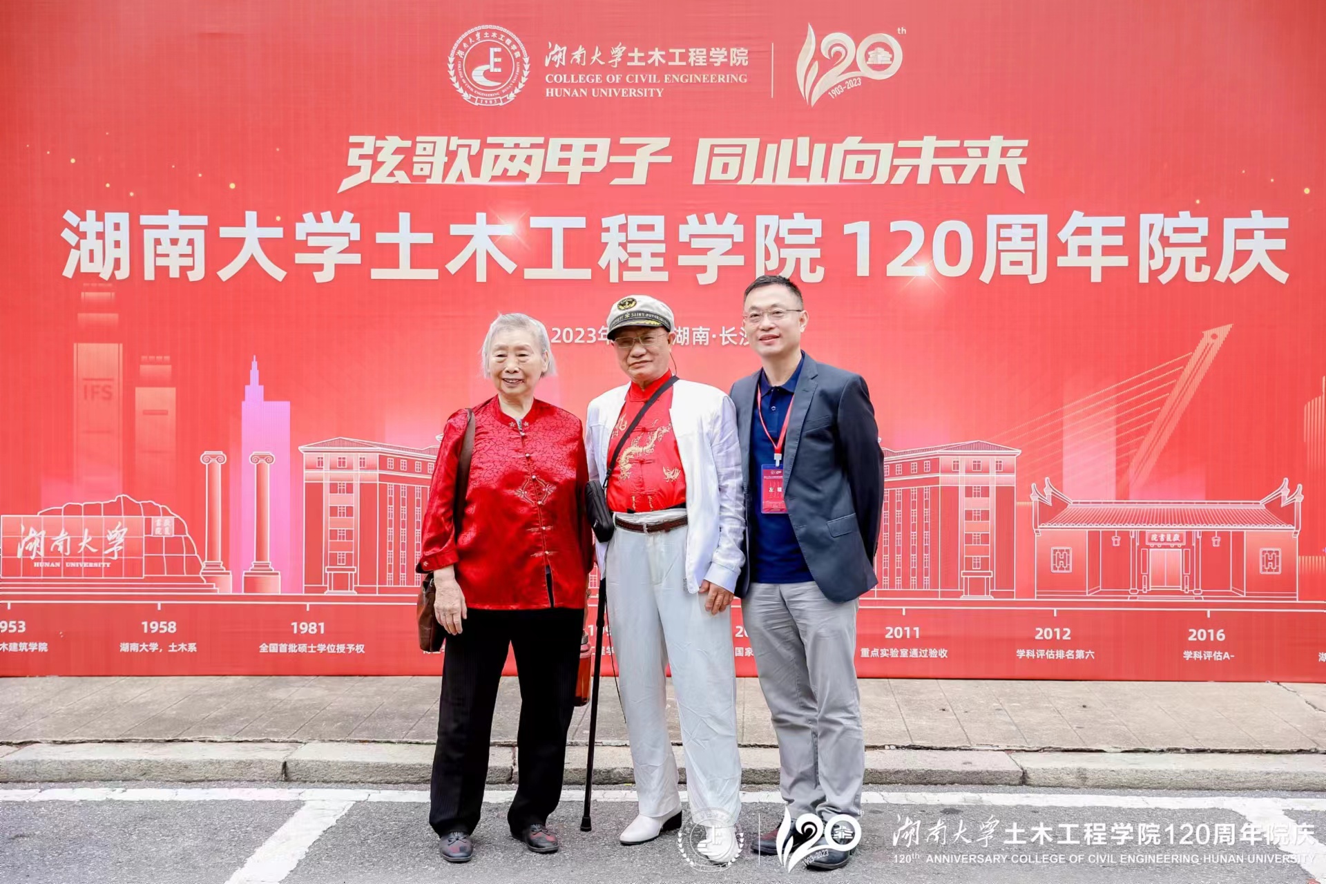 左晴与湖大罗国强老师和师母在土木工程学院120周年院庆的合影。