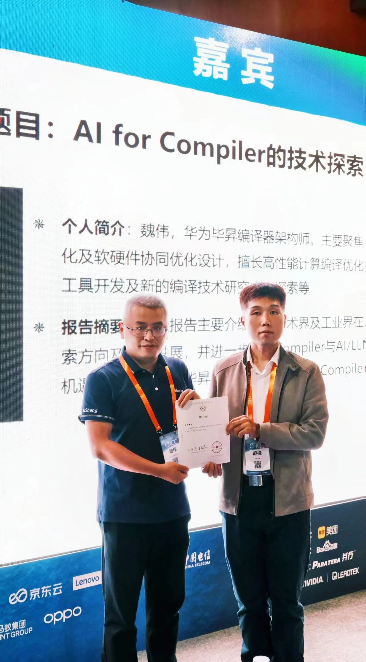 赵捷教授(右)参加2024中国计算机大会(CNCC2024),并主持“编译系统前沿技术与应用专题论坛”。