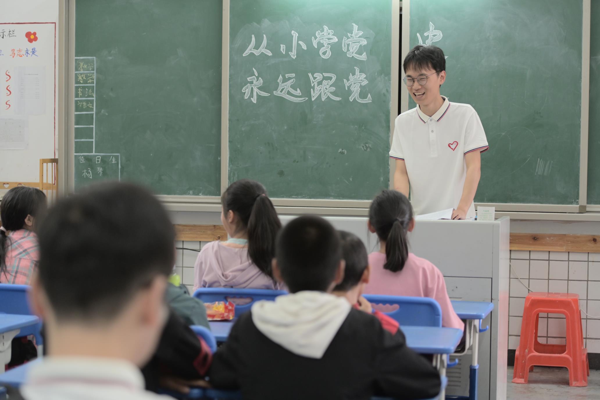 课堂上,支教团同学在上课。