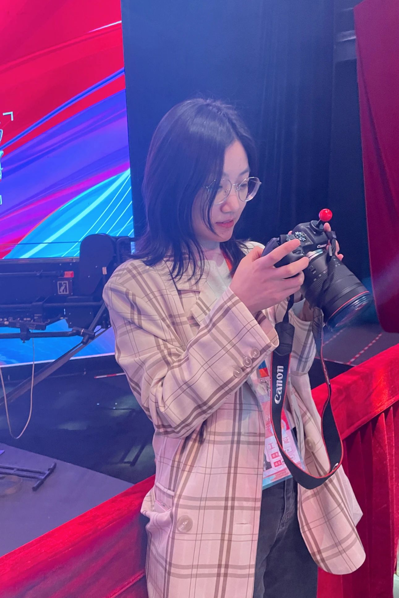 张星雨在拍摄、采访现场。