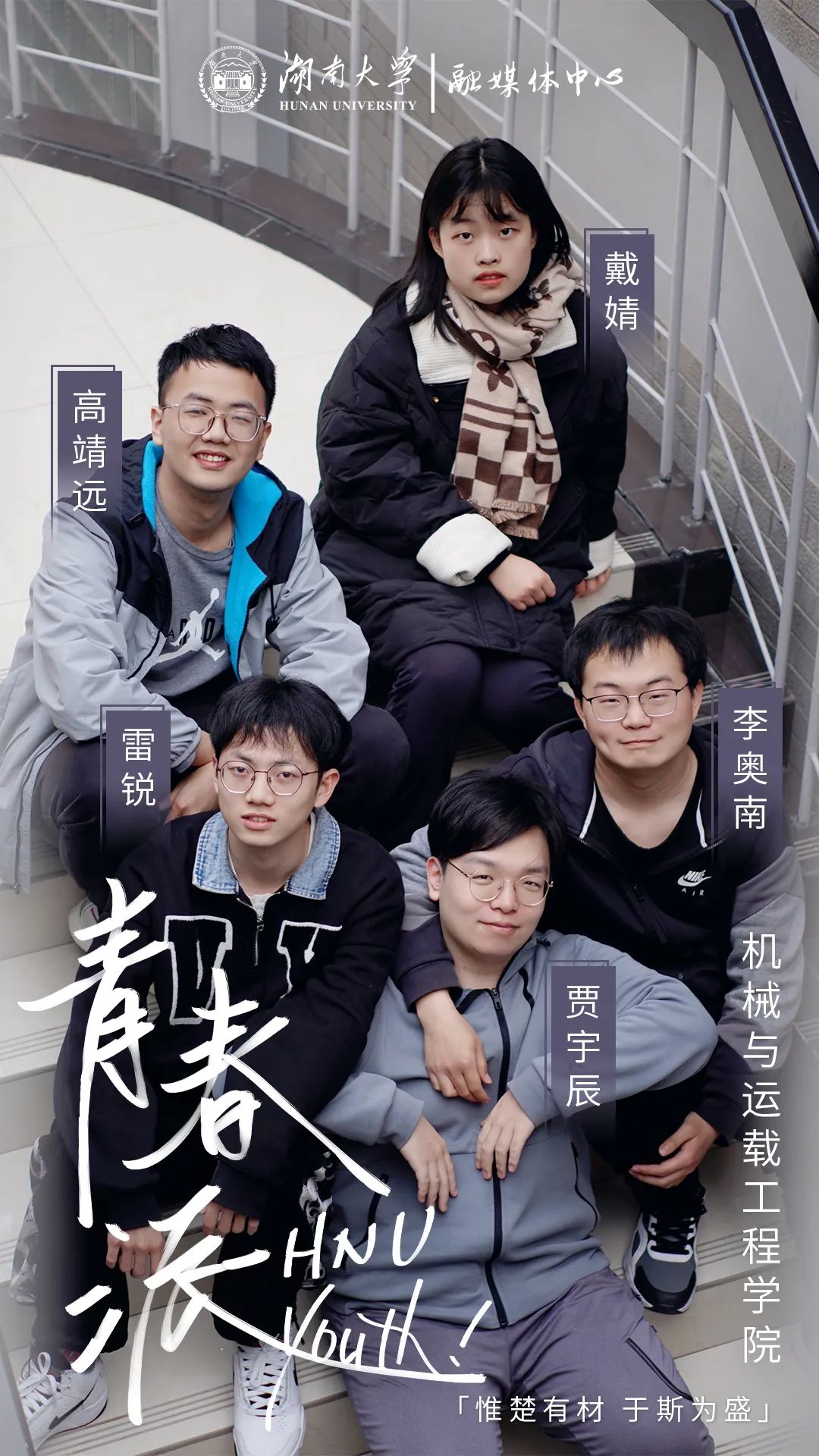 湖大人的青春是什么模样?在湖大,有多少个正值青春的学子,就有多少种灿烂的青春模样。“青春派”人物专栏,今日和你一起了解机械与运载工程学院“机创五人组”的故事。