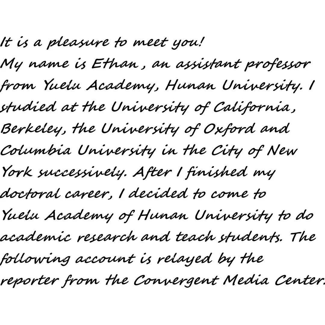 人物名片:梁长轩,本、硕、博分别就读于加州大学伯克利分校、牛津大学以及哥伦比亚大学, 现为湖南大学党委宣传部(新闻办公室)岳麓书院助理教授。
