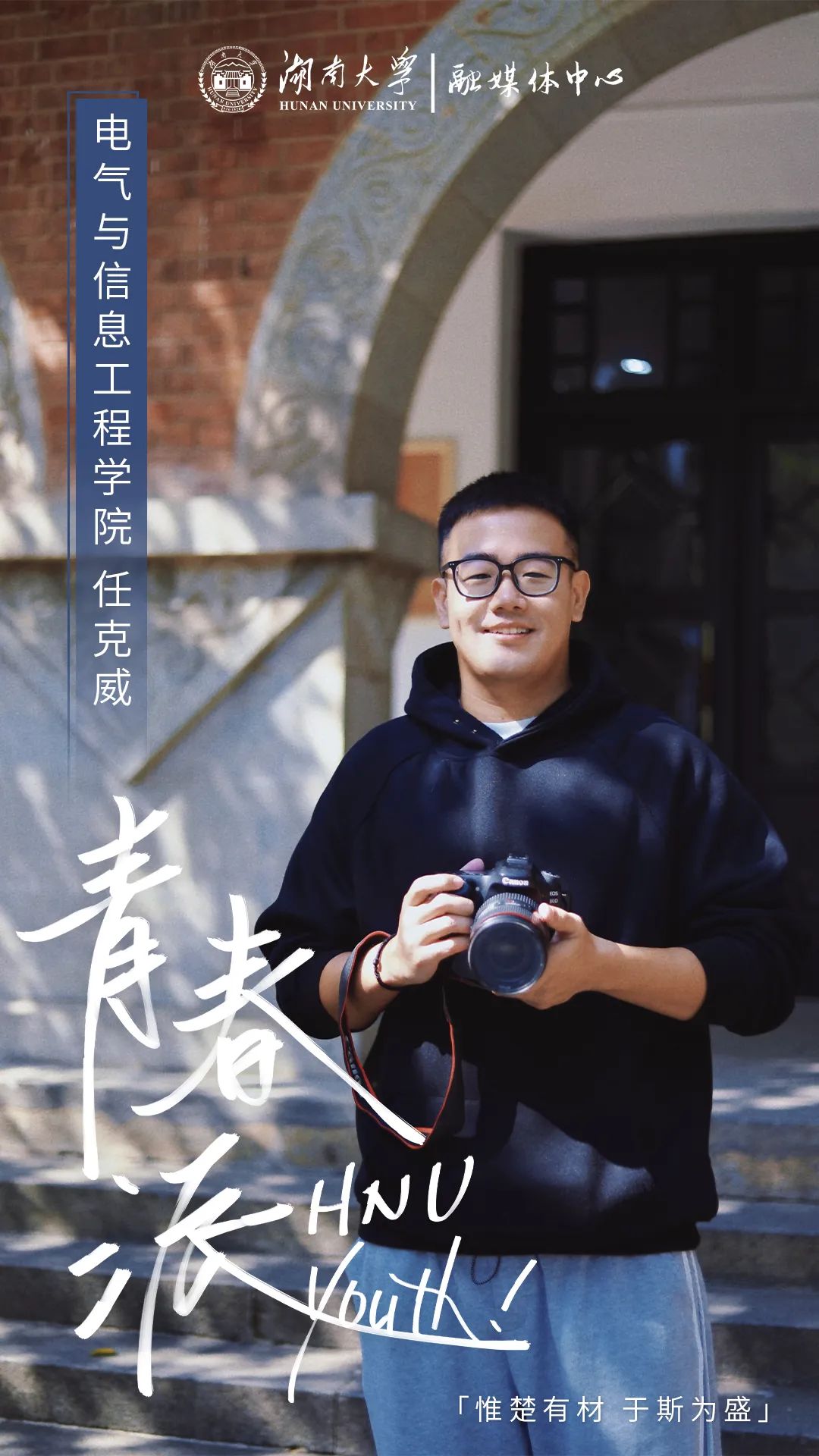 湖大人的青春是什么模样?在湖大,有多少个正值青春的学子,就有多少种灿烂的青春模样。“青春派”人物专栏,今日和你一起了解电气与信息工程学院2020级硕士研究生任克威的故事。