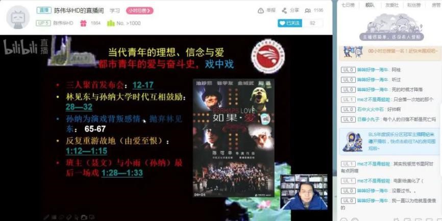 “陈老师会在直播间布置一个窗口让我们看到他本人,转换视频、PPT、同学发言的操作也很熟练,总是上课前十分钟就开播调整好设备,播放电影片段时老师会提前标注好要播放的时间点,这些细节真的非常暖心!感受到老师花了很多心思。我在老师身上不仅学到了知识,也学到了严谨负责的态度!”