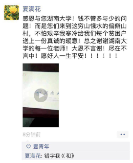 1月9日至11日,由湖南大学党委宣传部(新闻办公室)工会副主席杜玉丰一行三人及白水洞村党支部第一书记、工作队队长刘世明组成的湖南大学党委宣传部(新闻办公室)春节慰问小组,冒着风雪和严寒,专程赴对口扶贫点——虎形山瑶族乡白水洞村开展新春慰问活动。