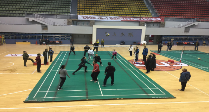 1月18日,体育学院工会组织全体教职工在南校区体育馆举行“迎新春”气排球联谊赛。