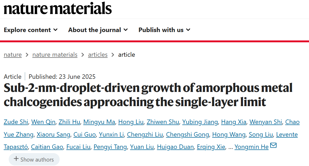 非晶体系因其长程无序的原子结构、高浓度的非饱和配位环境等特点,展现出区别于晶态材料体系的独特性质。我校化学院何勇民教授团队前期发现当非晶材料薄至单原子层时,其催化电解水制氢性能尤为卓越(Nat. Catal. 2022, 5(3), 212-221.)。然而,当前仍面临挑战:这类超薄非晶材料体系本身热力学不稳定(易结晶)且缺乏层状结构(无法像石墨烯般剥离),如何实现其原子级厚度、晶圆级薄膜的可控制备是一大难题。基于此,近日该...